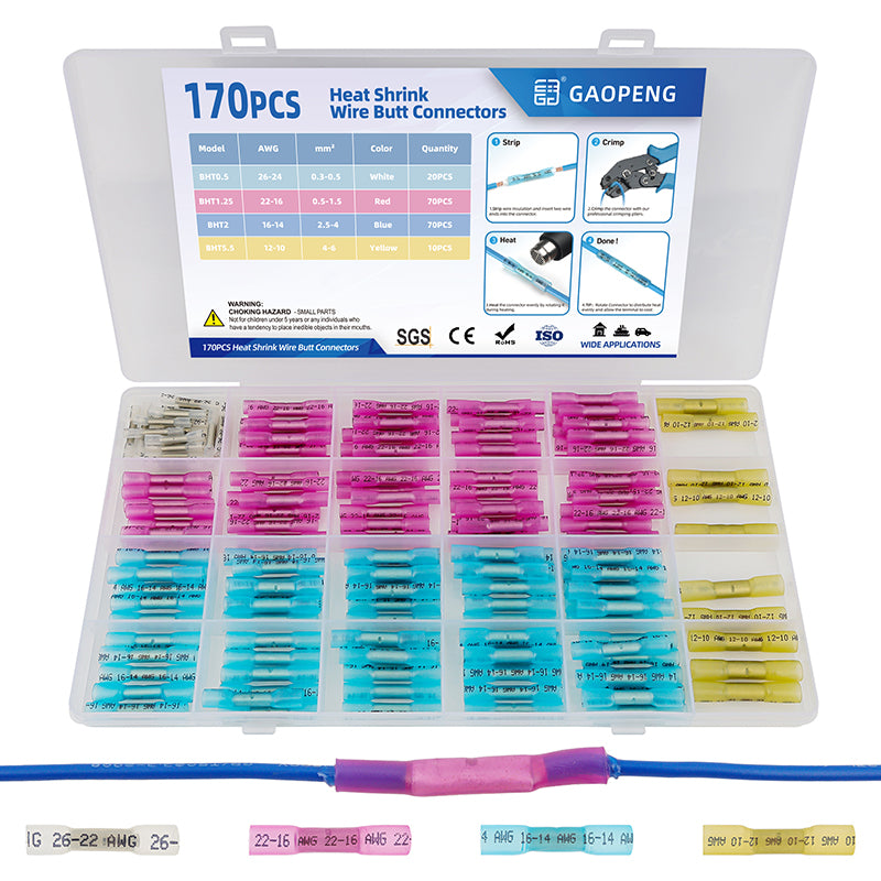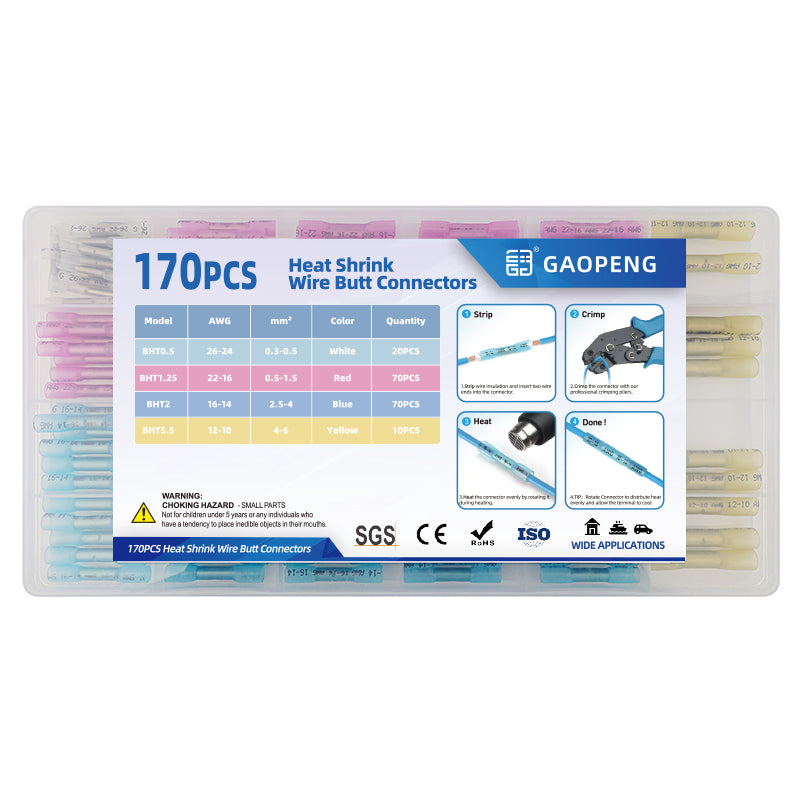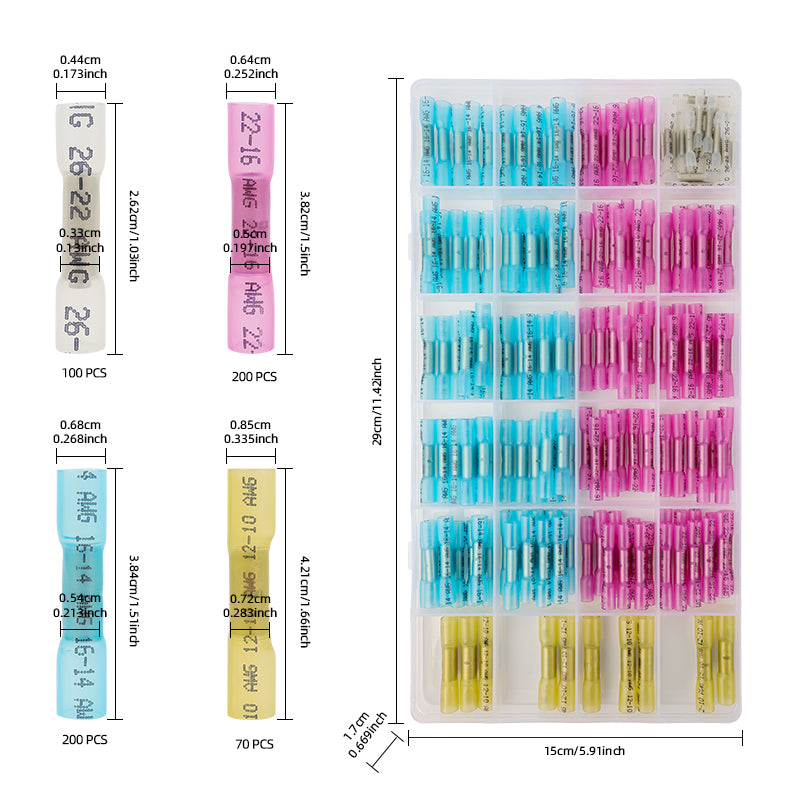 • Identifiable: The different colored tubes with wire diameter markings are easy to identify. By measuring the wiring and checking the wire diameter markings on the polyolefin tubes, you can easily select the appropriate connector.